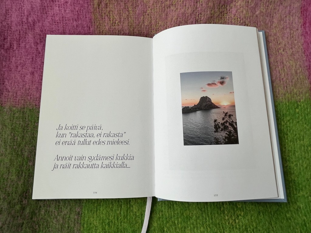 Ja nyt, kaksi vuotta myöhemmin, pitelen esikoiskirjaani käsissäni. Olen kuin hämmentynyt ja ylpeä äiti. Kirjani ei voisi olla kauniimpi… Sen sivuja koristavat kustantajani Cozy Publishingin Viola Virtamon ottamat upeat kuvat (Viola on myös suunnitellut ja toteuttanut kirjan ulkoasun, joka ylitti kaikki odotukseni.) Jokainen sivu huokuu kauneutta, lempeyttä ja rauhaa… Juuri niin kuin toivoinkin. ❤